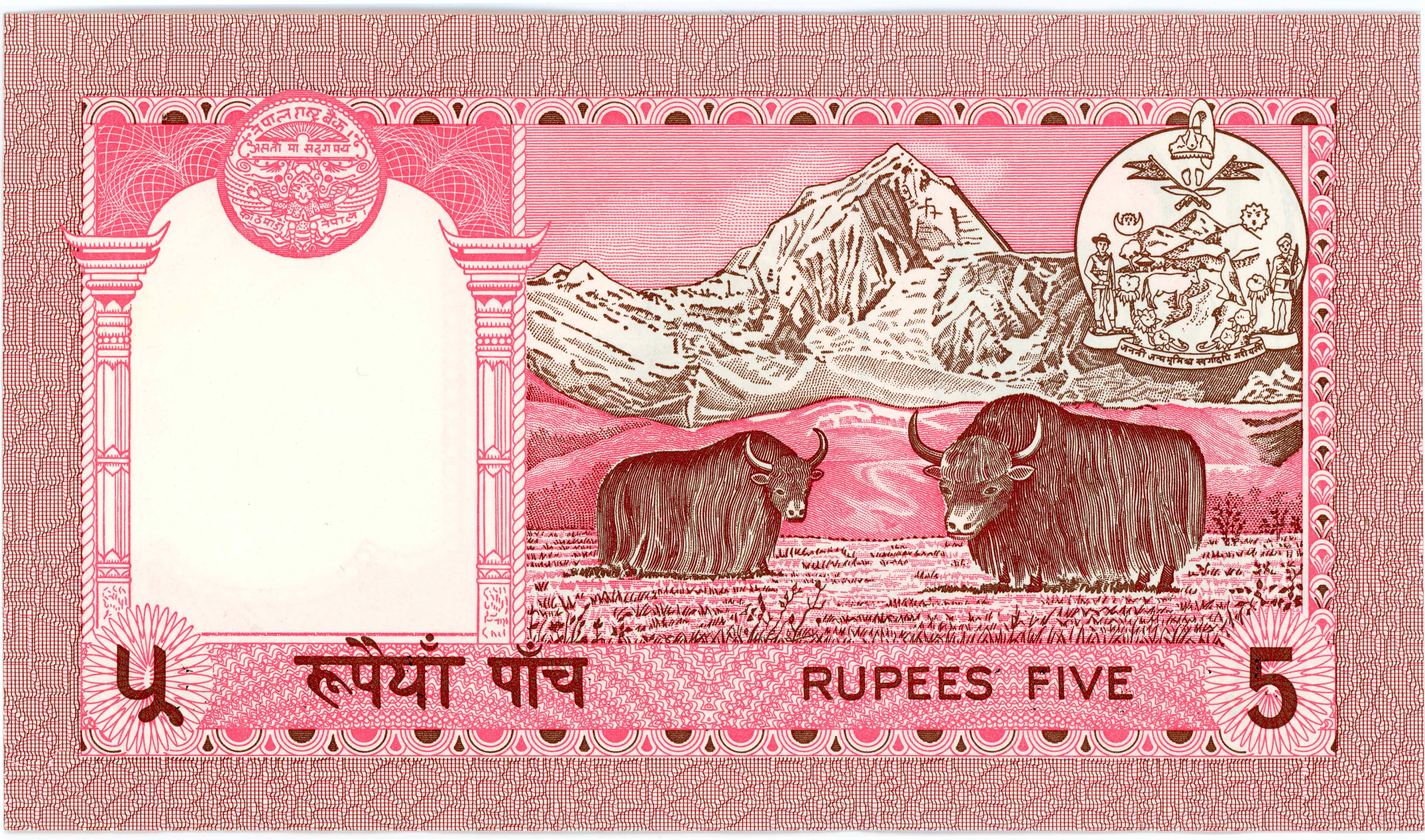 | Descrizione | Re Birendra Bir Bikram che porta la corona piumata a sinistra, il tempio al centro. |