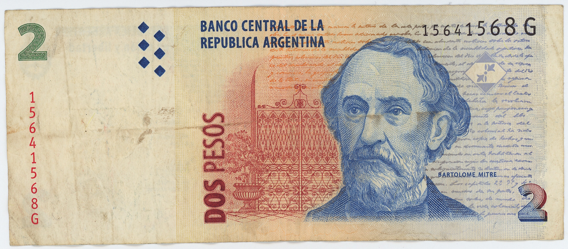 Bartolome Mitre sulla destra, numero di serie di dimensioni crescenti in alto a destra, cancello ornato al centro. Serie G. |