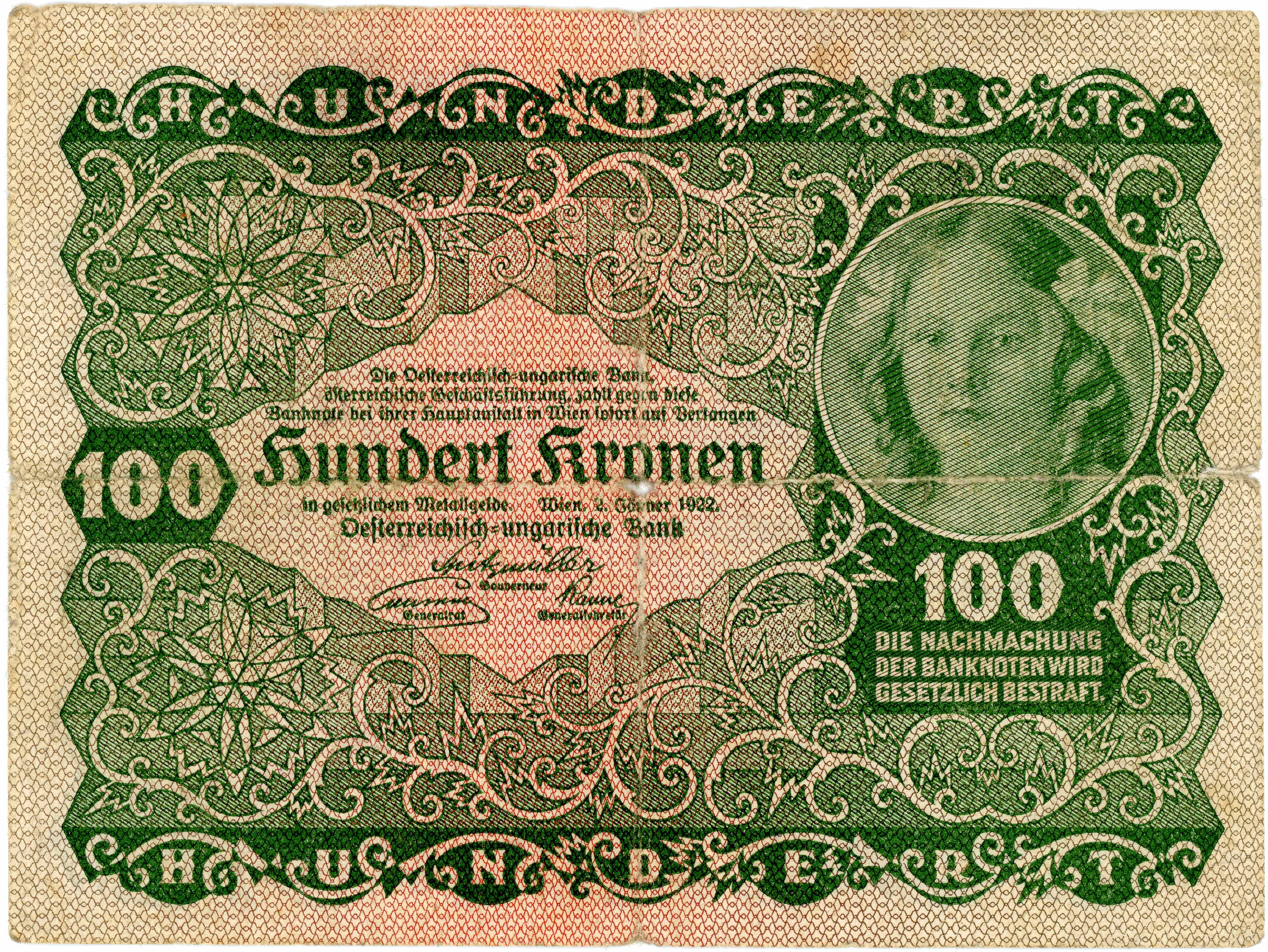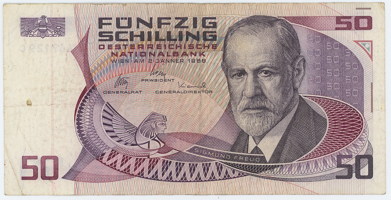 Stemma stilizzato dell'Austria in alto a sinistra, Sigmund Freud a destra. |