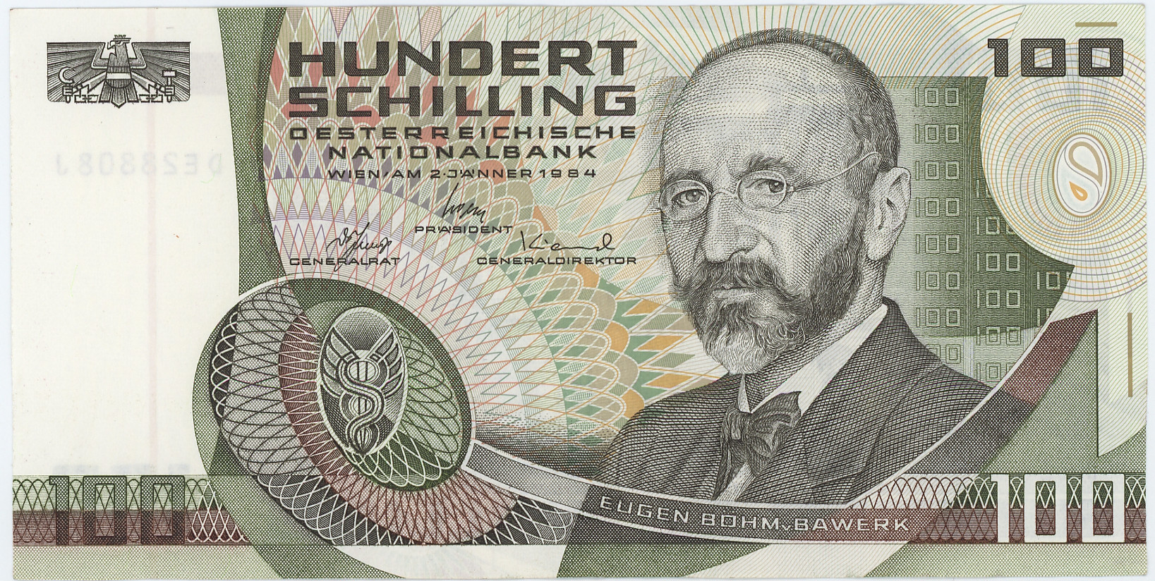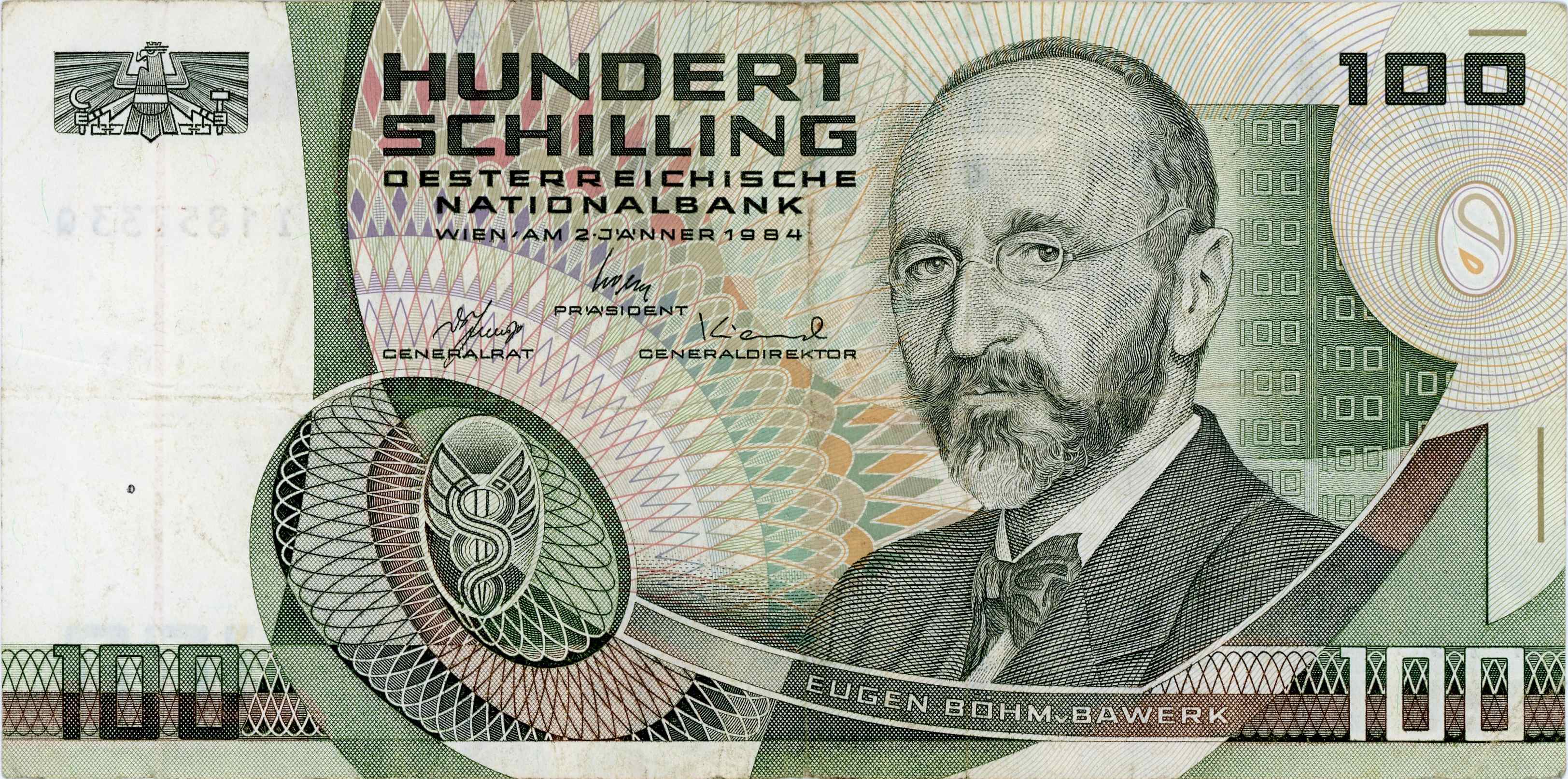 Stemma stilizzato dell'Austria in alto a sinistra, Eugen Böhm v. Bawerk sulla destra. |