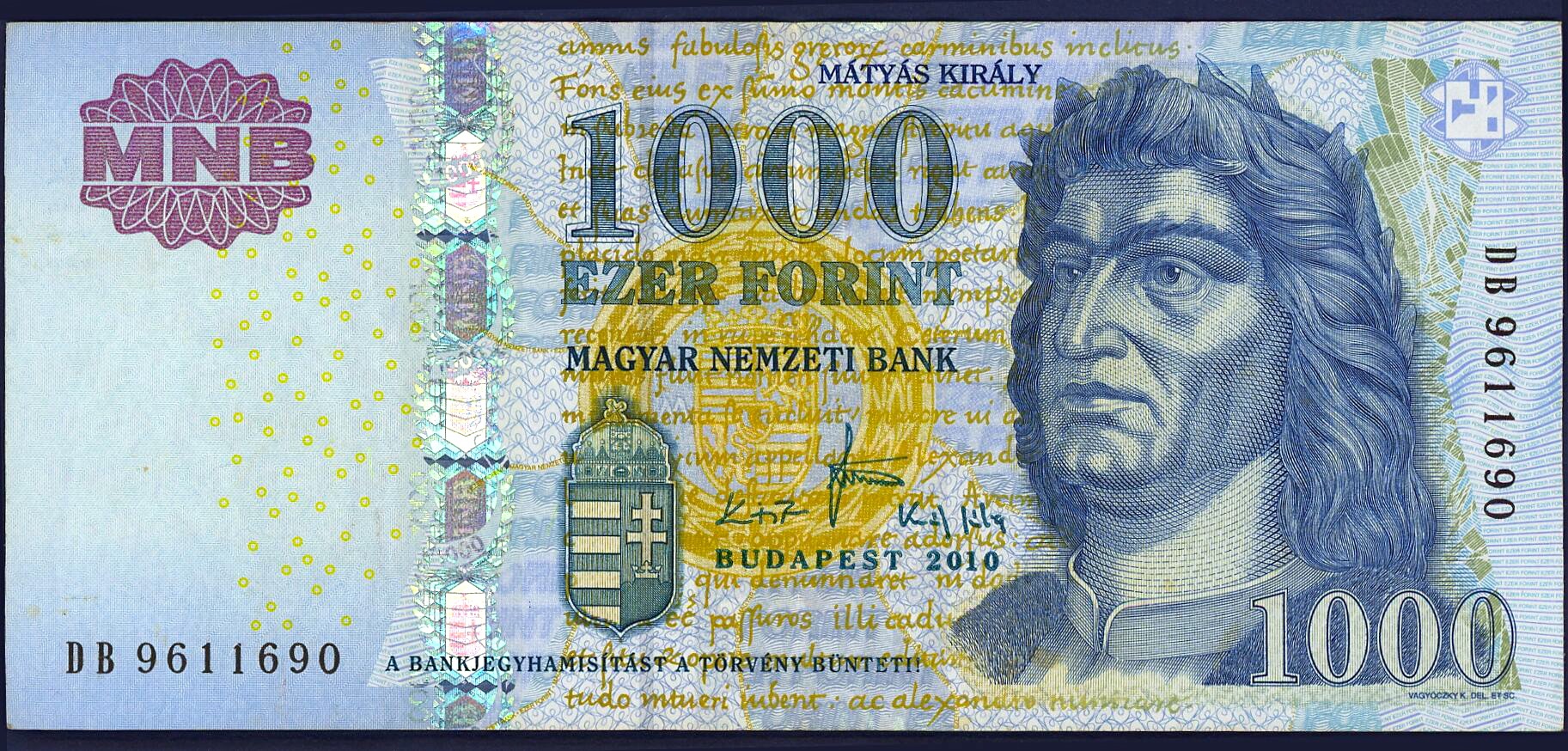 Re Mátyás, emblema reale a centro sinistra, immagine latente in cartiglio in alto a sinistra. |