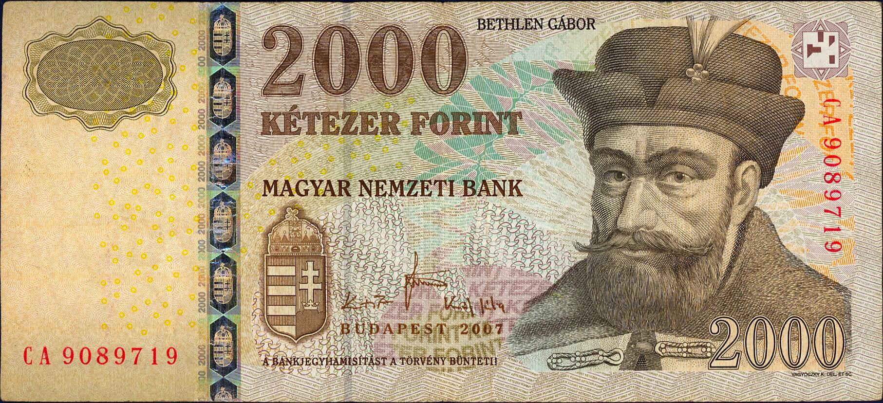 Valore a sinistra. Emblema a 3 barre con stella. Ritratto del principe Ferencz Rákóczi II a destra. |