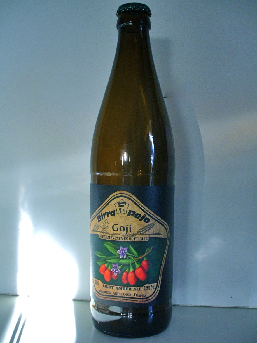 | Note | Goji è una birra ambrata, prodotta con l’aggiunta di bacche fresche di Goji biologico coltivato nella Val di Pejo. Al naso spiccano note fruttate ed erbacee. In bocca è leggera e rinfrescante, con un amaro delicato che lascia affiorare il sapore del Goji.