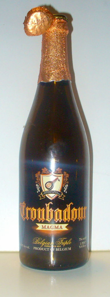 | Note | Troubadour Magma is an amber colored beer with the bitterness of an American IPA but balanced with the fruitiness of a Belgian Triple. Enjoy the explosion of fruity aromas from the dry-hopping. -- A Triple IPA wich Czech bittering hops and Simcoe for Dry-hopping. Made by De Proef for Drie Musketeers, Ursel. |