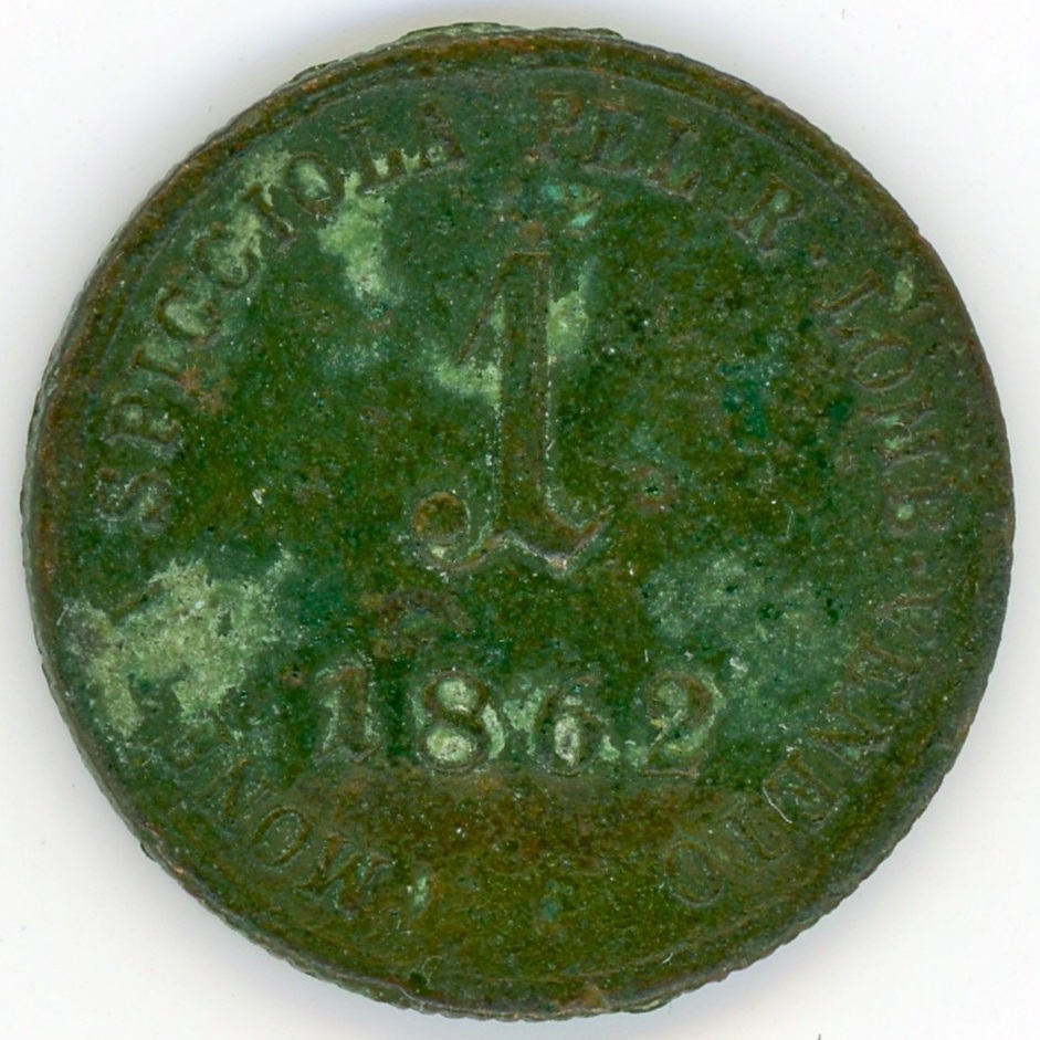 Indicazione del valore (1), in basso millesimo. Intorno MONETA SPICCIOLA PEL R • LOMB VENETO