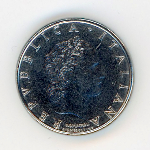 Testa di donna volta a destra, intorno "REPVBBLICA · ITALIANA" Sotto lungo il bordo un piccolo rombo e infine gli autori (ROMAGNOLI-GIAMPAOLI inc.). andate fuori corso dal 16 ottobre 2000.