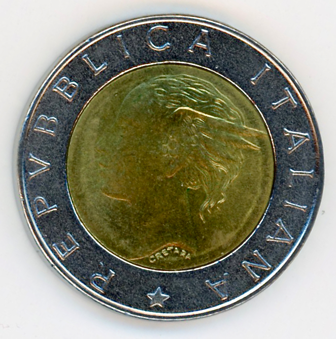 | Descrizione | Faccia comune, testa alata femminile, volta a sinistra, rappresentante la Repubblica. In basso la firma dell'autore. Sulla parte esterna la scritta REPUBBLICA ITALIANA ed una stella a cinque punte. |