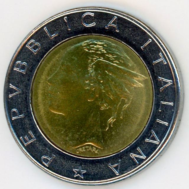 | Descrizione | Faccia comune, testa alata femminile, volta a sinistra, rappresentante la Repubblica. In basso la firma dell'autore. Sulla parte esterna la scritta REPUBBLICA ITALIANA ed una stella a cinque punte. |
