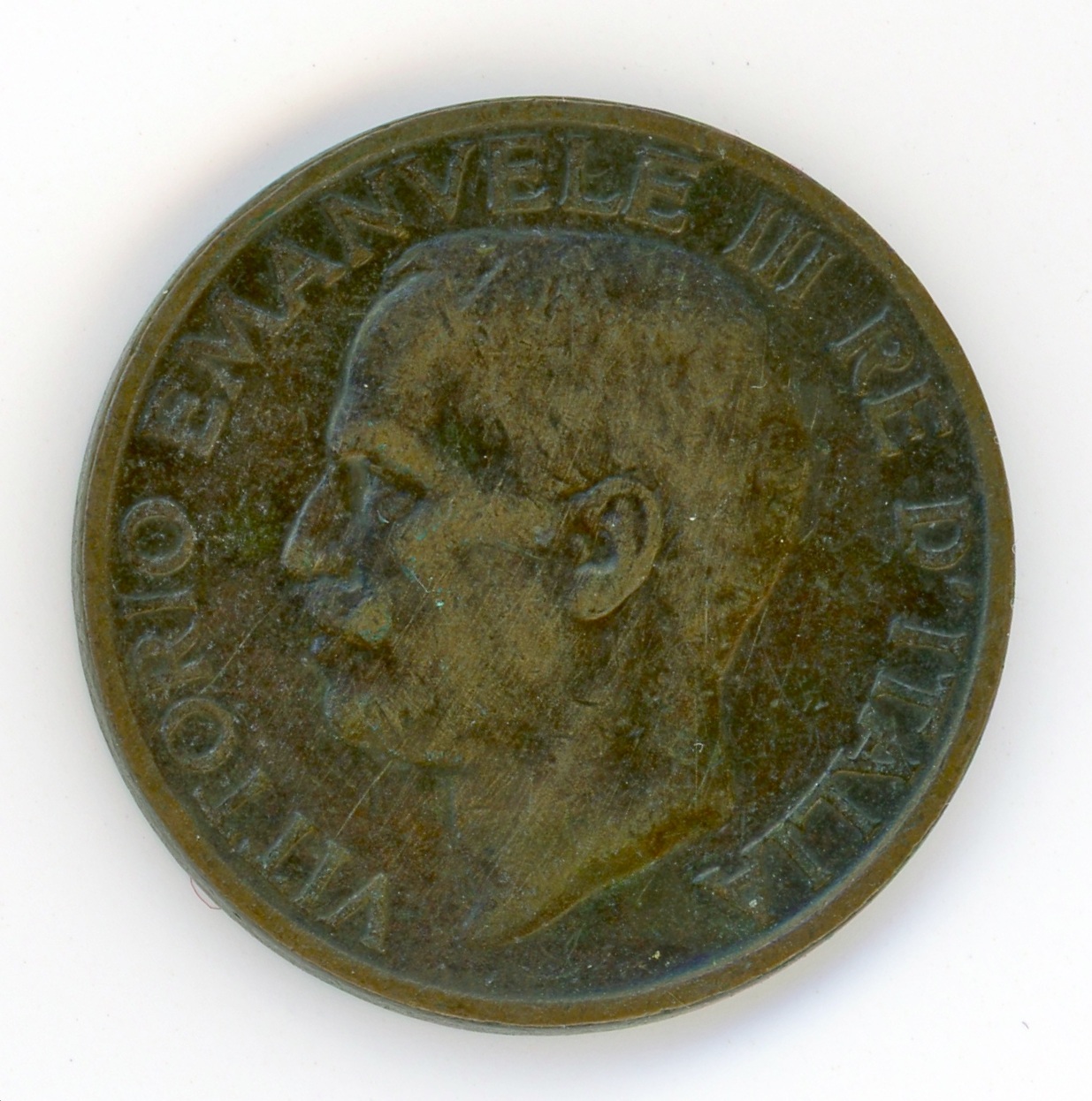 Testa del Re a sinistra, intorno VITTORIO EMANUELE II RE D'ITALIA. In basso, lungo il bordo, il nome dell'altro autore A. MOTTI.