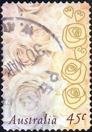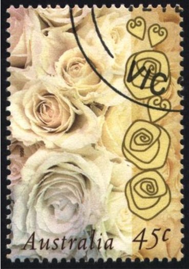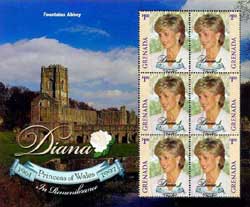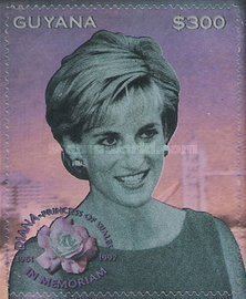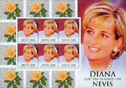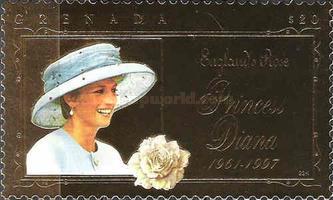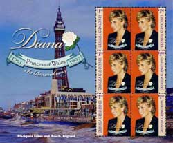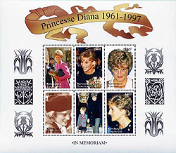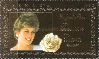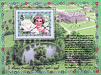 | Small white rose on stamp and sheet margin, Princess Diana |