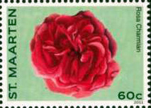 | Red rose on sheet margin, Prince William and Catherine Middleton on stamp |