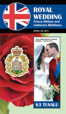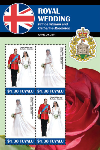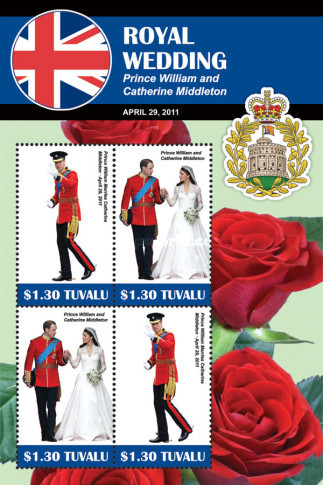 | Red roses on sheet margin, Prince William and Catherine Middleton on stamps |