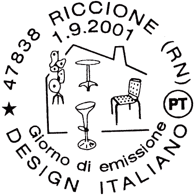 I sei francobolli sono disposti in triplice fila e uniti tra di loro in un riquadro perforato posto nella parte destra del foglietto. Fuori dal riquadro sono riportati, a sinistra, in alto la leggenda "DESIGN ITALIANO PER UN NUOVO PAESAGGIO DOMESTICO" e il testo: