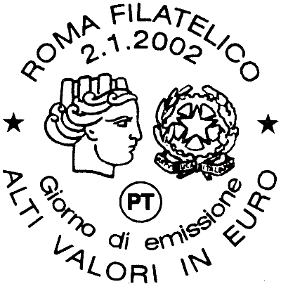 entro una cornice rettangolare, i cui lati verticali sono ornati da elementi decorativi costituiti da tratti di nastro intrecciati e recante sul lato inferiore la scritta "ITALIA" sono inseriti due riquadri. Nel riquadro in alto sono raffigurati a sinistra il profilo di donna turrita e a destra lo stemma della Repubblica. Nel riquadro in basso, su un fondino caratterizzato da motivi grafici geometrici, il cui colore varia a seconda del valore facciale, è riportato il rispettivo valore sovrapposto al simbolo della nuova moneta unica europea "€"
