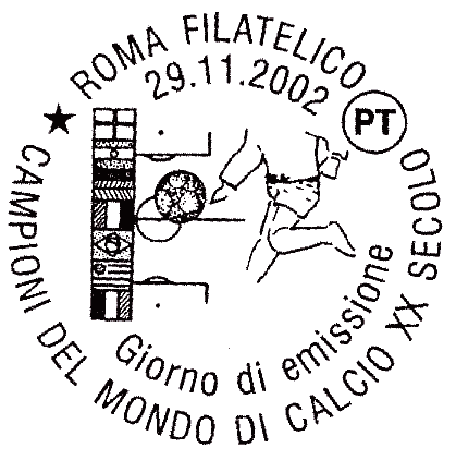| Vignetta | Campo e pallone di calcio, bandiere dei paesi vincitori del campionato del mondo |