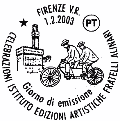 | Vignetta | Palazzo Vecchio di Firenze e due uomini in tandem |