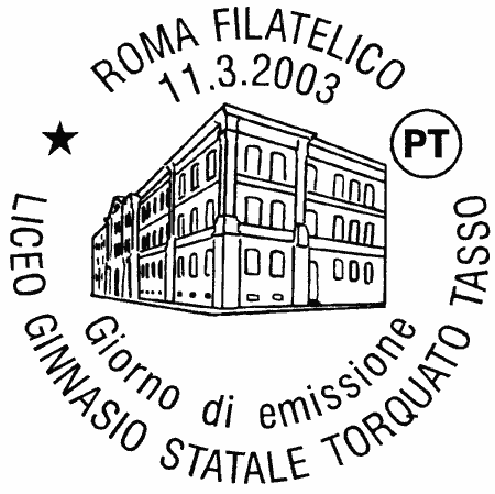 raffigura su un fondo a due colori, terra di Siena e bianco, su cui è ripetuta a tappeto la scritta -Liceo Ginnasio Torquato Tasso', una prospettiva del palazzo sede dell'istituto scolastico romano. Completano il francobollo la leggenda "LICEO GINNASIO T. TASSO - ROMA", la scritta "ITALIA" ed il valore "€ 0,41"