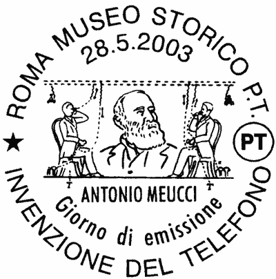 | Vignetta | Schema di conversazione telefonica tra due persone e Antonio Meucci |