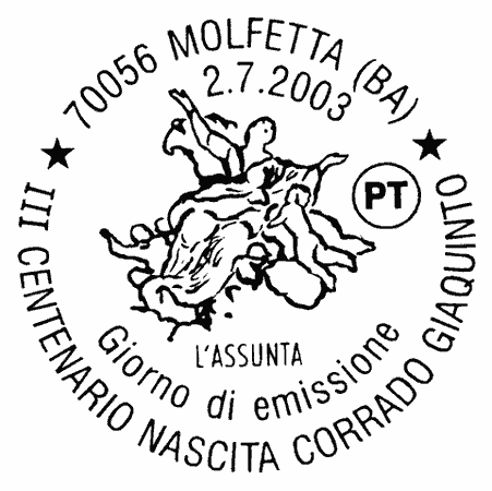 riproduce il dipinto di Corrado Giaquinto denominato 'L'Assunta', conservato nella Cattedrale di Molfetta. Completano il francobollo le leggende "CATTEDRALE S. MARIA ASSUNTA - MOLFETTA", "L'ASSUNTA" e "CORRADO GIAQUINTO", la scritta "ITALIA" ed il valore "€ 0,77