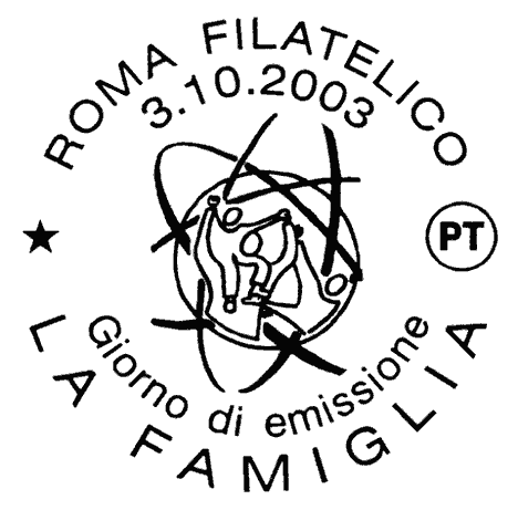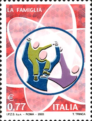raffigura, in grafica stilizzata, un atomo, che si ripete a tappeto sull'intero fondino, nel cui nucleo è rappresentata una famiglia. Completano il francobollo la leggenda "LA FAMIGLIA", la scritta "ITALIA" ed il valore "€ 0,77"