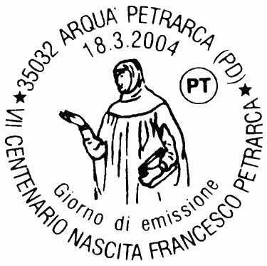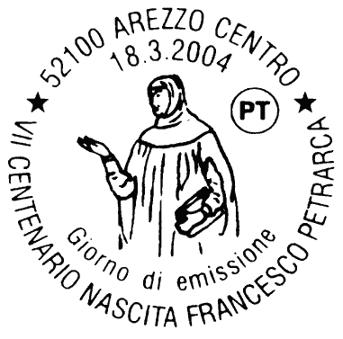 raffigura su fondo bleu, il poeta Francesco Petrarca, la cui figura è delimitata in alto, a destra e in basso da un motivo ornamentale a cornice. Completano il francobollo la leggenda "FRANCESCO PETRARCA", le date "1304 - 1374", la scritta "ITALIA" ed il valore "€ 0,45".