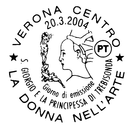 raffigura un particolare dell'affresco "S. Giorgio e la principessa di Trebisonda", realizzato dal pittore Antonio Pisano detto il Pisanello, nella Cappella Pellegrini della Basilica di Santa Anastasia in Verona. Completano il francobollo la scritta "ITALIA" ed il valore "€ 0,65"