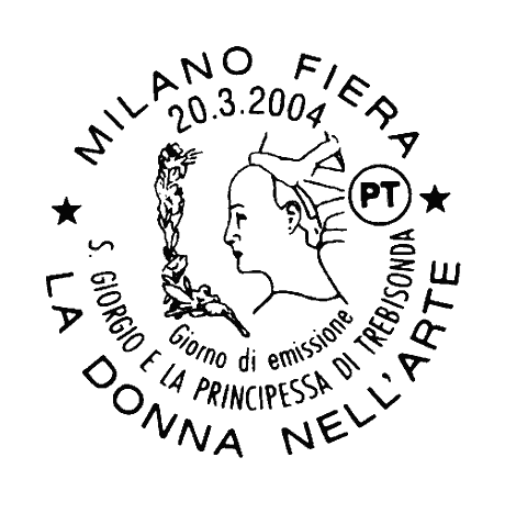 | Vignetta | Dipinto "S. Giorgio e la principessa di Trebisonda" del Pisanello, figura femminile in blu oltremare, cornice in rosso carminio |