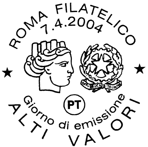 entro una cornice rettangolare, i cui lati verticali sono ornati da elementi decorativi costituiti da tratti di nastro intrecciati sorretti da un'asta e recante sul lato inferiore la scritta "ITALIA" sono inseriti due riquadri. Nel riquadro in alto sono raffigurati a sinistra il profilo di donna turrita e a destra lo stemma della Repubblica. Nel riquadro in basso, su un fondino caratterizzato da motivi grafici geometrici è riportato il valore di "2,35" sovrapposto al simbolo della moneta unica europea "€".