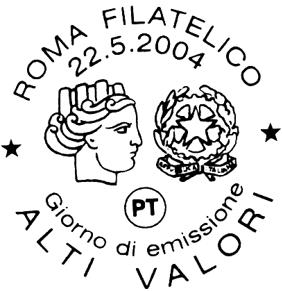 entro una cornice rettangolare, i cui lati verticali sono ornati da elementi decorativi costituiti da tratti di nastro intrecciati sorretti da un'asta e recante sul lato inferiore la scritta "ITALIA" sono inseriti due riquadri. Nel riquadro in alto sono raffigurati a sinistra il profilo di donna turrita e a destra lo stemma della Repubblica. Nel riquadro in basso, su un fondino caratterizzato da motivi grafici geometrici, è riportato il valore di "3,00" sovrapposto al simbolo della moneta unica europea "€"