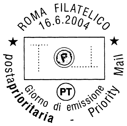 la grafica del valore è costituita da un fondino grigio-verde, con al centro un elemento circolare raffigurante l'impronta tridimensionale della lettera P.La vignetta è completata da linee rette che si toccano perpendicolarmente ai due angoli opposti, sinistro in alto e destro in basso, e che delimitano la scritta "ITALIA", la leggenda "postaprioritaria" ed il valore "€ 2,00", posti in senso orario all'esterno delle linee stesse
