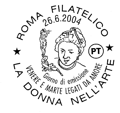 raffigura un particolare del dipinto "Venere e Marte legati da Amore" realizzato dal pittore Paolo Calieri detto il Veronese e conservato presso il Metropolitan Museum of Art, in New York. Completano il francobollo la scritta "ITALIA" ed il valore "€ 0,90".