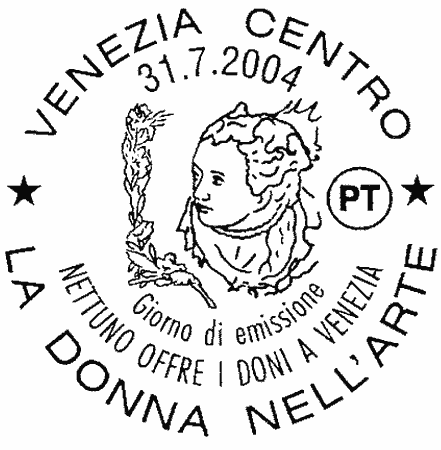 | Vignetta | Dipinto "Nettuno offre doni a Venezia" del Tiepolo, figura femminile in bleu azzurro, cornice in viola malva. |