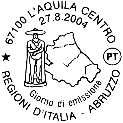 Completano il francobollo la rispettiva leggenda "ABRUZZO", la scritta "ITALIA" ed il valore "€ 0,45"