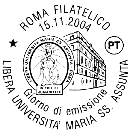 raffigura una prospettiva del palazzo sede della LUMSA - Libera Università Maria Ss. Assunta, situato nel centro storico di Roma nei pressi della Città del Vaticano; in alto a destra è riprodotto il logo dell'UniversitÀ.Completano il francobollo la leggenda "LIBERA UNIVERSITà MARIA SS. ASSUNTA ROMA", la scritta "ITALIA" ed il valore "€ 0,45".