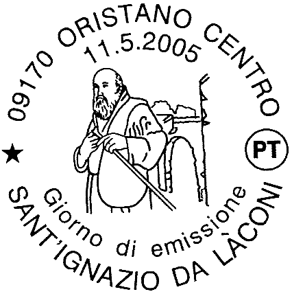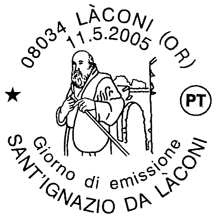 rappresenta un antico manifesto su cui è ritratto Sant'Ignazio da Làconi. Il Santo che visse nel XVIII secolo e fu canonizzato nel 1951 è raffigurato con il bastone diventato il suo simbolo. Completano il francobollo la leggenda "SANT'IGNAZIO DA LACONI", la scritta "ITALIA" e il valore "€ 0,45"