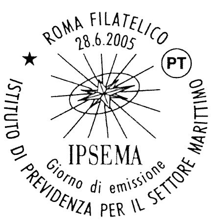riproduce su una raggiera, al centro il simbolo grafico e, sulla destra, la relativa scritta del logo "IPSEMA"; intorno sono raffigurate antiche imbarcazioni stilizzate. Completano il francobollo la leggenda "ISTITUTO DI PREVIDENZA PER IL SETTORE MARITTIMO", la scritta "ITALIA" ed il valore "€ 0,45"