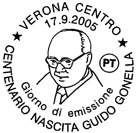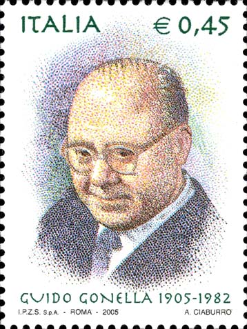 raffigura una immagine di Guido Gonella, uomo politico e giornalista. Completano il francobollo la leggenda "GUIDO GONELLA 1905-1982", la scritta "ITALIA" ed il valore "€ 0,45"
