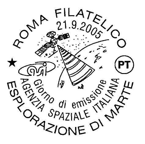 raffigura un radar in orbita intorno ad un pianeta a rappresentare la partecipazione italiana al programma di esplorazione di Marte e, in basso a sinistra, è riprodotto il logo dell'Agenzia Spaziale Italiana che coordina tale partecipazione. Al centro è applicato un ologramma che rappresenta la propagazione delle onde elettromagnetiche emesse dal radar, sul quale è riportato più volte l'acronimo "ASI". Completano il francobollo la leggenda "ESPLORAZIONE DI MARTE", la scritta "ITALIA" ed il valore "€ 0,80"
