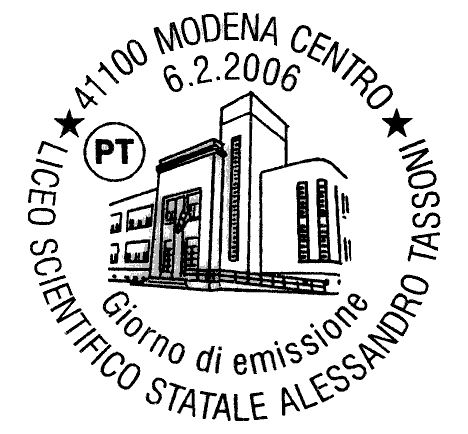 il francobollo dedicato al Liceo Scientifico Statale "Alessandro Tassoni" in Modena, raffigura una prospettiva della facciata principale del moderno edificio sede del Liceo. Completano il francobollo le rispettive leggende "LICEO SCIENTIFICO STATALE ALESSANDRO TASSONI - MODENA", la scritta "ITALIA" e il valore "€ 0,45"