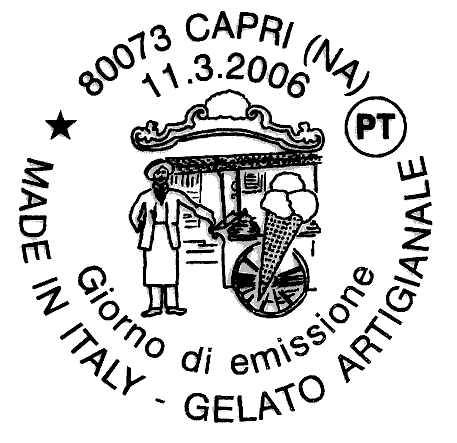 il valore dedicato al gelato artigianale raffigura una immagine d'epoca di un venditore ambulante di gelati, con il caratteristico carrettino, sul quale si evidenzia un cono gelato. Completano il francobollo le leggende "MADE IN ITALY" e "GELATO ARTIGIANALE", la scritta "ITALIA" ed il valore "€ 0,60".