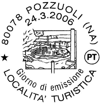 raffigura, entro una cornice lineare, una veduta pittorica della località prescelta e precisamente: Pozzuoli: il Tempio di Serapide, uno dei monumenti più rappresentativi dell'antica città.