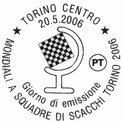 raffigura, in grafica stilizzata, un mappamondo il cui globo terrestre 6egrave; sostituito da una scacchiera. Completano il francobollo la leggenda "MONDIALI A SQUADRE DI SCACCHI TORINO 2006", la scritta "ITALIA" ed il valore "€ 0,62". È l'ultimo francobollo italiano con il faccuale da 0,62 euro. A maggio, il servizio di posta ordinaria è stato abolito, mentre il costo della posta prioritaria è diminuito da 0,62 euro a 0,60 euro (per il primo porto).