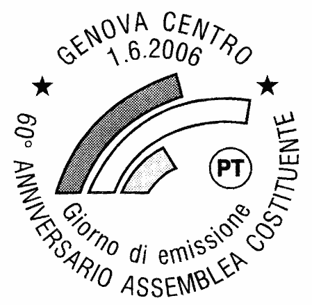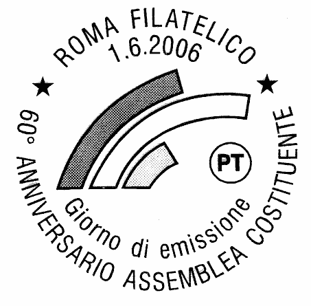 raffigura, sullo sfondo, l'immagine di una seduta dell'Assemblea Costituente eletta a suffragio universale il 2 giugno 1946 con il compito di redigere la Costituzione delle Repubblica Italiana e, in primo piano, i colori della bandiera nazionale, così come rappresentati nel logo delle celebrazioni. Completano il francobollo la leggenda "60"0 ASSEMBLEA COSTITUENTE", le date "1946 - 2006", la scritta "ITALIA" ed il valore "€ 0,60".