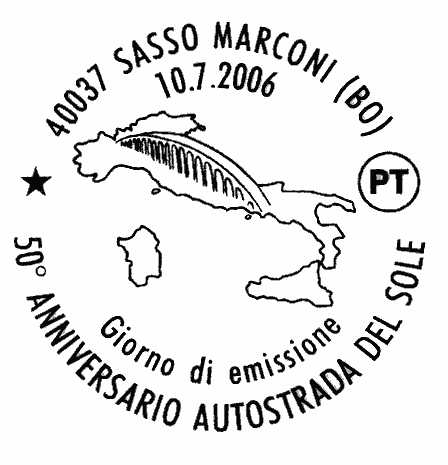 Completano il francobollo le leggende "50º ANNIVERSARIO AUTOSTRADA DEL SOLE", la scritta "ITALIA" ed il valore "€ 0,60"