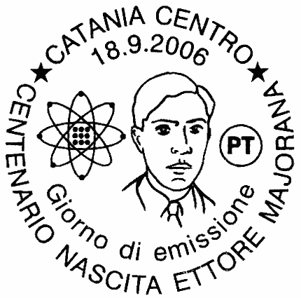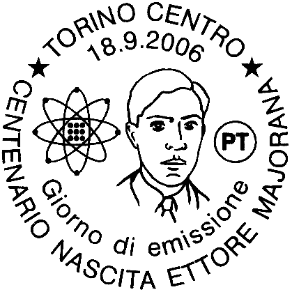 raffigura, su fondo blu, l'elaborazione grafica di un ritratto dello scienziato Ettore Majorana e in basso a sinistra la rappresentazione stilizzata dell'atomo, con il nucleo attorno al quale orbitano gli elettroni. Completano il francobollo le leggende "CENTENARIO DELLA NASCITA" e "ETTORE MAJORANA", la scritta "ITALIA" ed il valore "€ 0,60"