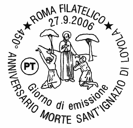 raffigura, su un cielo ornato di arabeschi dorati, un'iconografia di Sant'Ignazio di Loyola, liberamente tratte da opere a loro dedicate. Completano il francobollo le rispettive leggende "SANT'IGNAZIO DI LOYOLA 1491 - 1556", la scritta "ITALIA" ed il valore "€ 0,60".