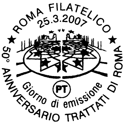 i due francobolli, uniti tra di loro lungo il lato di mm 48, sono impressi in un riquadro perforato posto al centro del foglietto. Fuori dal riquadro è raffigurato un particolare della vignetta rappresentata nei francobolli. Completano il foglietto, in alto, la leggenda "GRANDE EVENTO EUROPA 2007" e, in basso, il logo di Poste Italiane.
