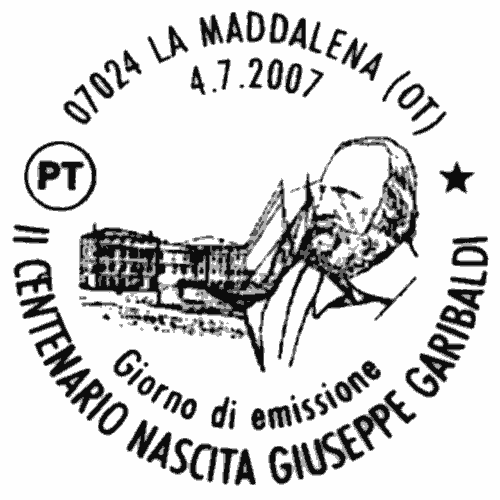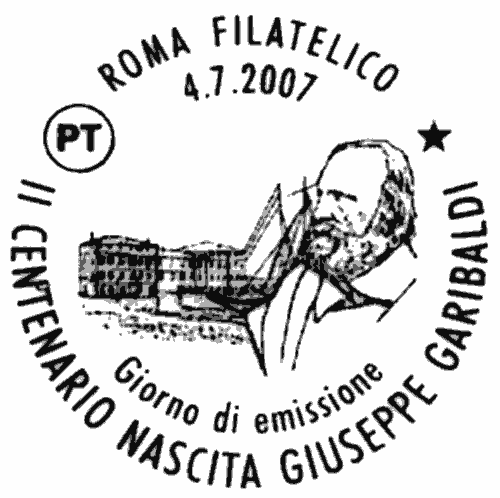 raffigura, in primo piano a destra, un ritratto di Giuseppe Garibaldi, sullo sfondo una immagine d'epoca del porto di Nizza e della casa natale dell'eroe dei due mondi. Completano il francobollo la leggenda "GIUSEPPE GARIBALDI", le date "1807 - 1882", la scritta "ITALIA" ed il valore "€ 0,65".