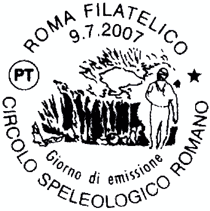 raffigura uno speleologo ritratto di spalle che esplora una grotta con stalattiti e stalagmiti; in basso a sinistra è rappresentato un pipistrello in volo, simbolo degli speleologi. Completano il francobollo la leggenda "CIRCOLO SPELEOLOGICO ROMANO", la scritta "ITALIA" e il valore "€ 1,40".