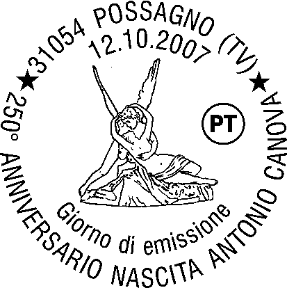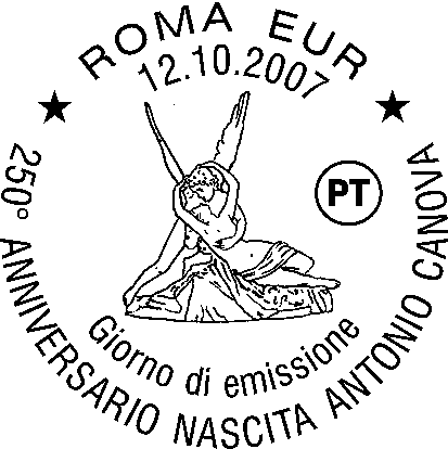 raffigura l'opera scultorea denominata "Amore e Psiche che si abbracciano"; realizzata da Antonio Canova e conservata nel Museo Louvre a Parigi. Completano il francobollo la leggenda "ANTONIO CANOVA", le date "1757-1822", la scritta "ITALIA" ed il valore "€ 1,50.".